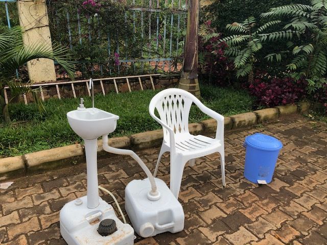 I’m also aware of all the portable wash hand basins that have appeared outside shops, hotels and in bus stations. Speaking to my landlady about them in the evening, she said many hundreds of them were imported during the Ebola outbreak in DRC, but not many had been sold. Now they’re proving invaluable.