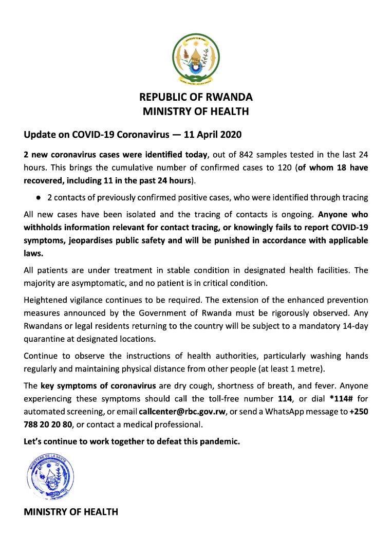 My youngest son is ill, and has a headache so bad he can’t speak to me. The next day we Facetime, he looks awful and has a sore throat and cough. I hope that he doesn’t have the virus but unless it’s bad enough to go to hospital how would you know. Rwanda is testing everyone with symptoms and have so far carried out over 11,000 tests on over 8,000 people, 845 samples were tested just today alone, and over 1,000 yesterday. There have been just 120 cases, of whom 18 have recovered.