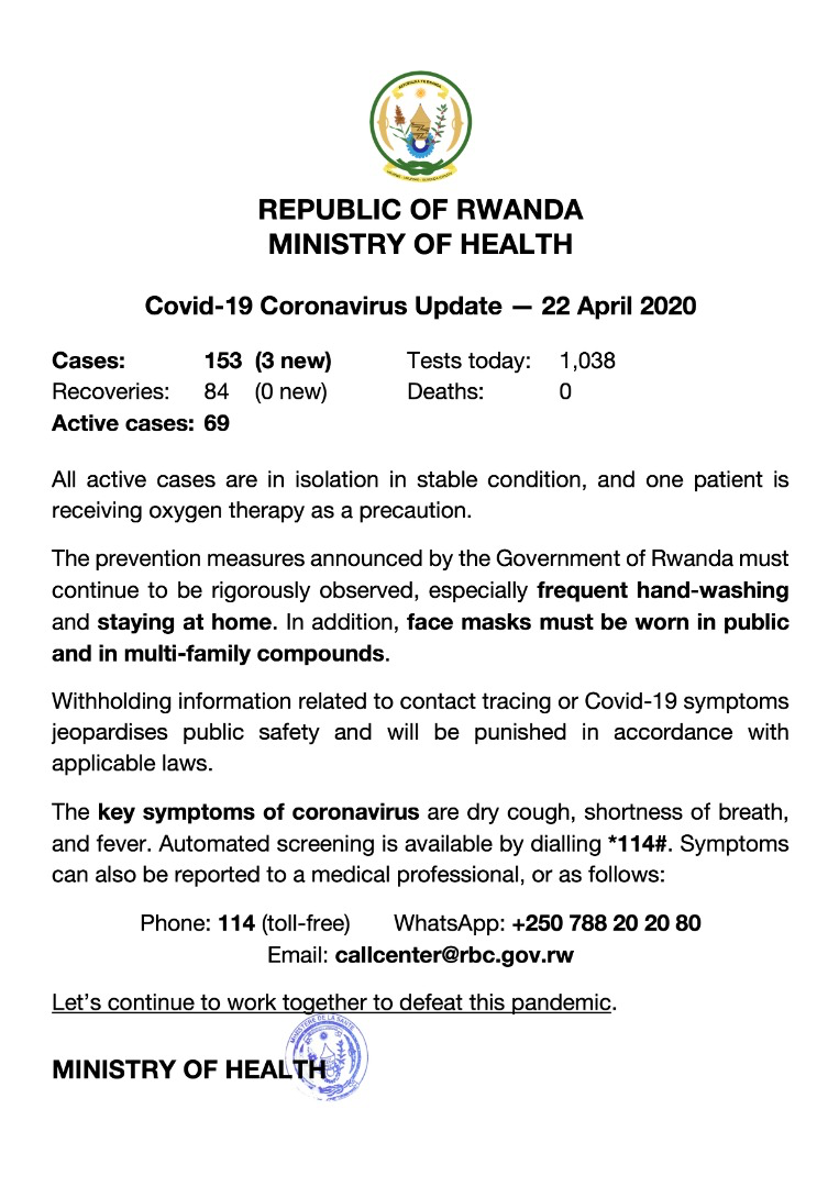 There have been over 1,000 tests carried out each day recently, and the number of new cases seems to be going down. Today 1,038 tests were carried out, there are 3 new cases bringing the total to 153, but 84 recoveries. There has been just one patient who has received oxygen as a precaution and most other cases are asymptomatic.