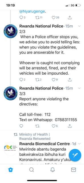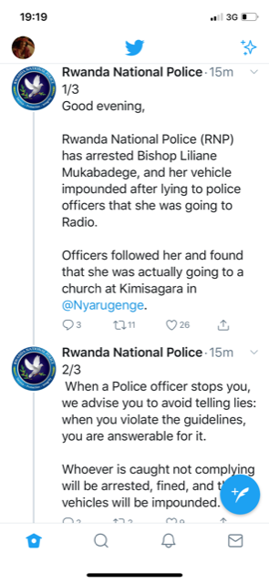 I see on Twitter that Rwanda police have arrested a woman who was trying to hold a church service with a warning that those violating the guidelines will arrested, fined and their vehicles impounded.